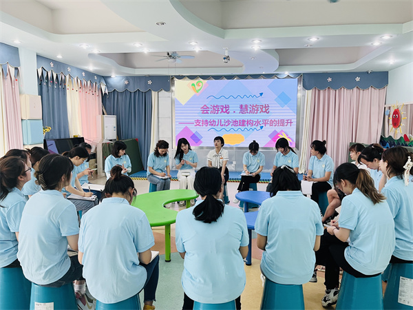随着沙水乐园课程的不断实施,幼儿园对沙水游戏的探究也一直在思索和践行,为了促进教师对沙水乐园课程的再认识、对课程愿景的再明确,从“心”开始提高教师的组织与实施能力,将沙水课程落到实处,6月1日上午,成都市第十九幼儿园开展了支持幼儿沙池建构水平提升教研活动。