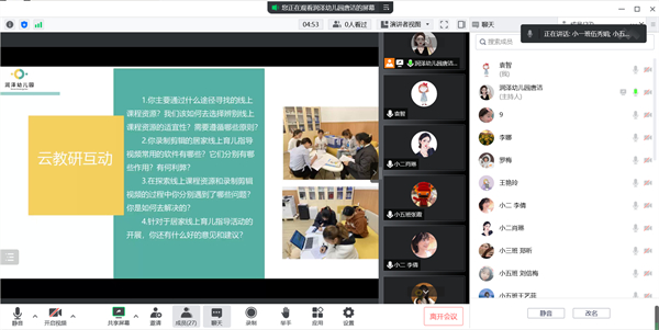 疫情难阻秋日至,云端教研正当时。“停课不停研”,这不仅仅是一句口号,也已经深深融入四川天府新区润泽幼儿园每一位教师的心里。面对疫情带来的教研方式与途径的改变,近日,润泽幼儿园教师利用现有的资源和设备在“云端”学习共研,不断提升自己的专业素养。