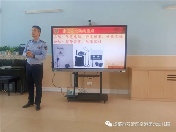 为进一步做好幼儿园安全防范工作,2022年10月10日下午,成都市双流区空港第六幼儿园邀请成都利民消防宣传中心的胡教官来园进行消防安全及反恐防暴知识讲座。