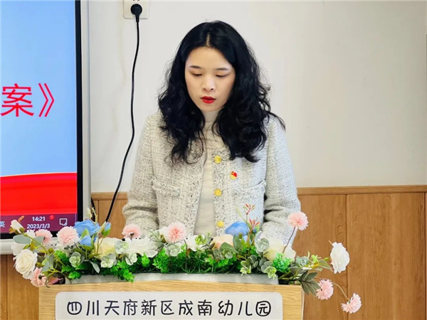 刘晓艳同志表示:要坚持党建引领,谨记“为党育人、为国育才”的神圣使命,充分发挥一个支部就是一个堡垒的战斗作用,牢记“全心全意为人民服务”的宗旨,正风气、强廉洁,以求真务实创新的态度争做教育改革排头兵,统一思想,强化行动,以创优质的学前教育助力新区新时代公园城市示范区建设。