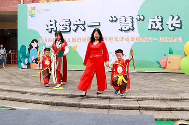 县机关幼儿园白塔园区小班组和小北街园区中班组在白塔园内举行了以“书香六一、慧成长”为主题的阅读成果展暨“六一”庆祝活动。