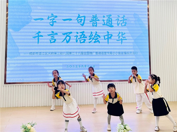 9月11日-9月15日,成都市温江区天府第三幼儿园举行了以“童心童语诵同音,奋进推普筑未来”为主题的推普周系列活动,让我们一起看看这周都有哪些有趣活动吧!