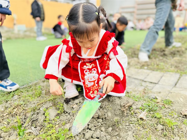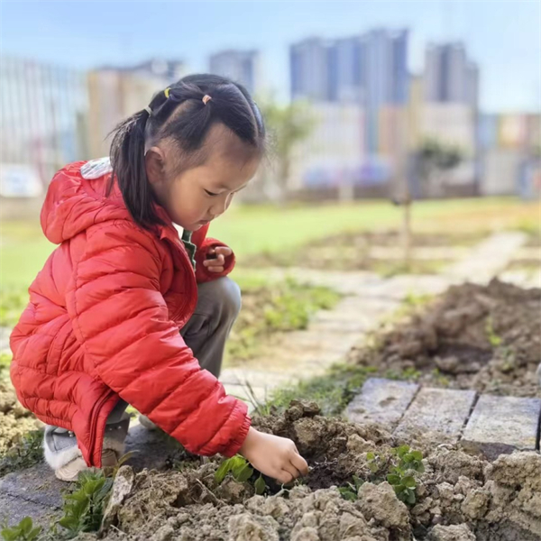 “小种子长大以后会变成什么样子呢?”小班孩子们带着这样的疑问种下了一棵棵菜苗,每一种认知背后,都会折射出童心世界对生命本真的尊重。