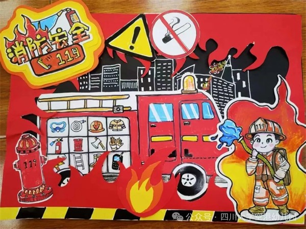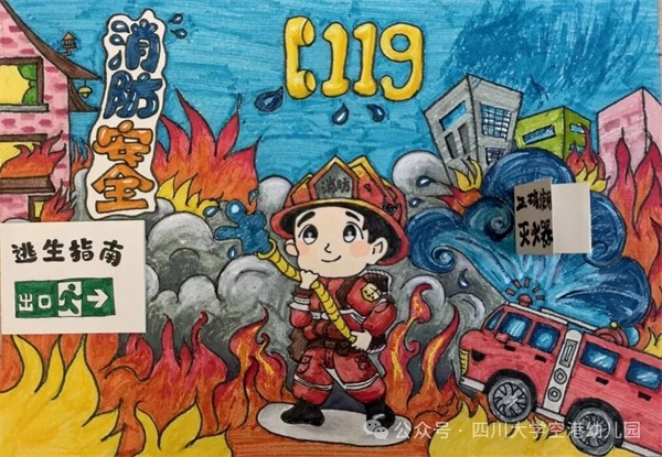 一幅幅作品生动有趣、主题鲜明,画中有情节有故事,有想法有感悟。这样寓学于乐的形式学习消防知识,让消防安全知识在无形中渗入孩子们幼小的心灵,不仅充分调动了幼儿们学习消防安全知识的积极性,埋下了“学消防、懂消防、用消防”的种子,也增强了幼儿对消防战士的热爱与尊敬之情。