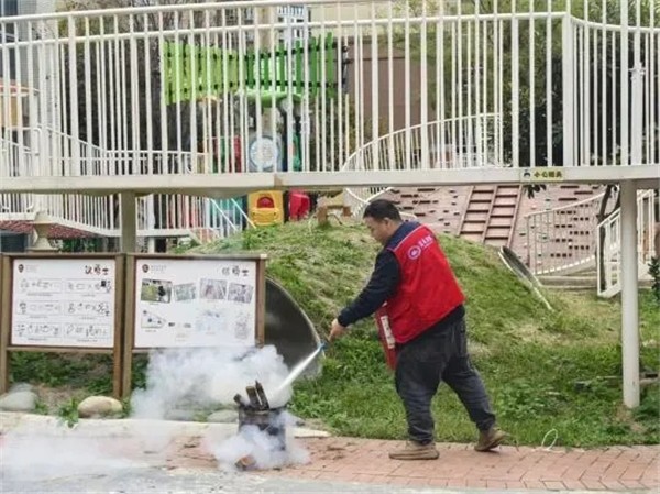 双流区公兴幼儿园消防维保专业人员到现场进行指导,向师幼讲解灭火器的种类、工作原理、使用方法(提、拔、握、压)及注意事项,并结合实物演示操作步骤。同时,提醒所有师幼重视消防安全,认真学习日常消防工作的注意要点。
