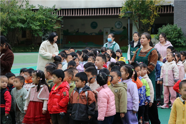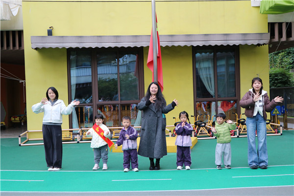 近日,成都市青羊区天府幼儿园锦绣园一场以“小雪”为主题的升旗仪式,温暖上演。