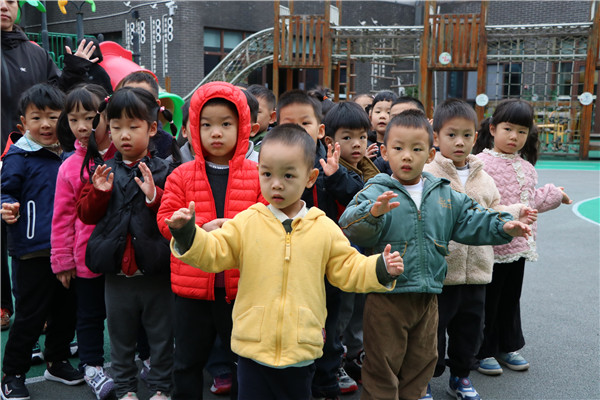在悠扬的歌声中,小四班的宝贝们一起表演了手势舞《二十四节气之小雪》。孩子们全神贯注的表情,整齐划一的动作,充满了童真与童趣。