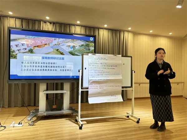 在小组分享环节,各研讨组将凝聚集体智慧的方案与思考进行了集中展示与交流,不同的视角、相同的目标,激发出更多关于教师队伍建设的创新思路。