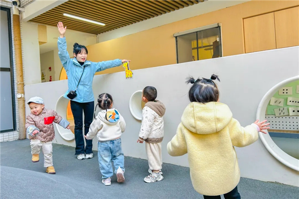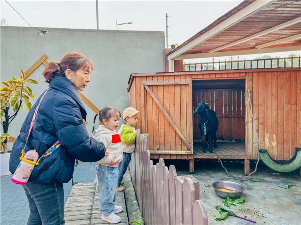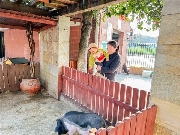 在保教办主任高文柔的带领下,亲子家庭从大厅开始,沿着参观路线陆续走进户外游戏区、小农场和动物朋友的家。