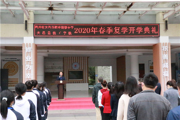 四川教育报道网4月23日讯(记者 张红 通讯员 张爽) “复学后,虽然你我之间的物理距离有一米之遥,但我们心灵之间却是零距离的。在这特殊时期,越是困难,越要奋斗;越是奋斗,才能赢得幸福!”当大邑县职业高级中学余治平校长在2020年春季复学开学典礼上讲完这句话时,如潮般的掌声从教室传到综合楼大厅前,回荡在春光照耀下的校园。