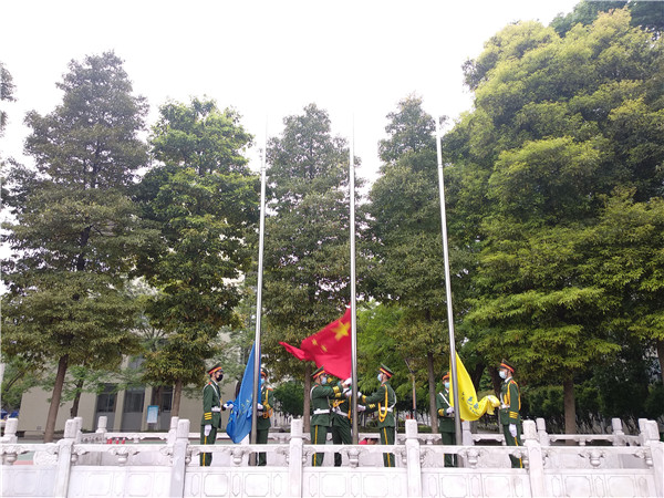 复学典礼第一项,由校长余治平致辞。余校长首先倡导全校师生向用生命守护民众的英雄们致敬,感谢每一个防疫英雄为同学们换来了今天的复学。其次,余校长要求全校师生仍不可掉以轻心,仍需“外防输入,内控扩散”,提出六点要求,希望全校师生团结一致,共建平安校园。最后,余校长叮嘱大家,今天的幸福来之不易,希望大家能珍惜学习机会,越是困难,就越要奋斗;越是奋斗,才能赢得属于幸福!