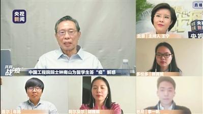 5月4日是五四青年节,当晚8时,外交部和国家卫健委联合邀请中国工程院院士钟南山与海外留学生视频连线,为留学生答“疫”解惑。