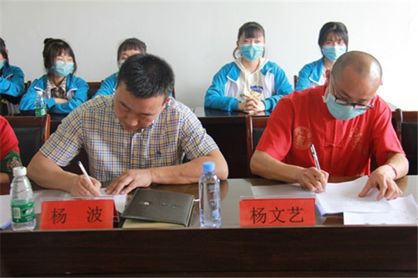 成立仪式上,新津职高教导处副主任、民间技艺传承项目牵头人雷云代表学校宣读了关于杨文艺、高慧兰两位老师的特聘教师聘任文件,校长杨波与绳编传承工作室特聘教师杨文艺、剪纸传承工作室特聘教师高慧兰签订了合作协议,并为两位老师颁发了聘书。