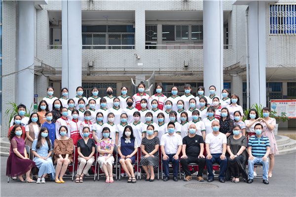 学校领导、科任老师与高2020届学前教育2班全体同学合影留念