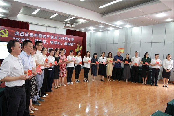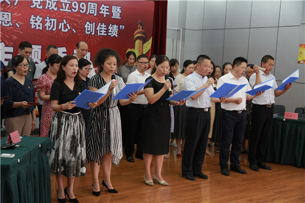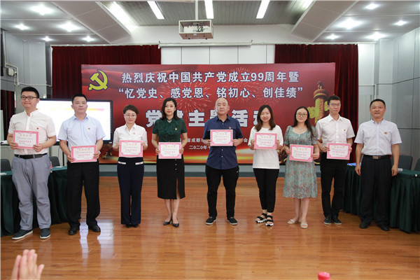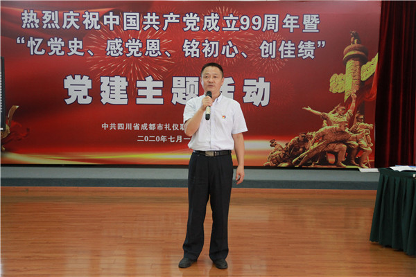 2020年7月1日,成都市礼仪职业中学(以下简称:礼仪职中)开展庆祝中国共产党成立99周年暨“忆党史、感党恩、铭初心、创佳绩”主题党日活动,全体共产党员参加了活动。活动进行了重温入党誓词、党建知识竞赛、党建主题朗诵比赛、表彰年度先进个人和党委书记讲党课等议程。