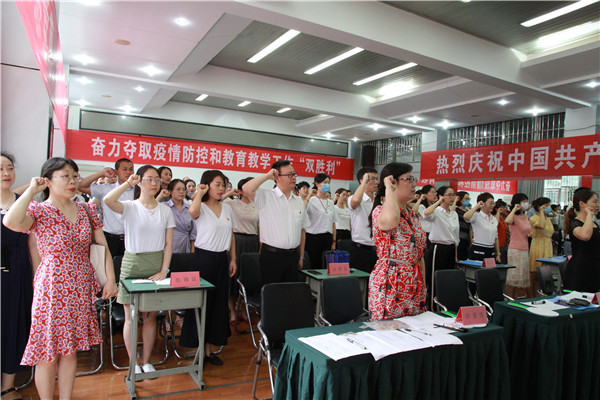 活动伊始,全体党员在国旗下慷慨激昂地合唱了国歌。并由党委委员、副校长张易同志领誓,全体党员在党旗下一起重温入党誓词,铿锵誓词让每一位党员再次受到精神洗礼。