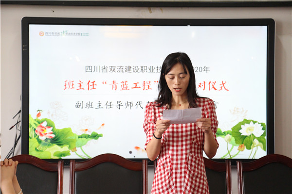 2020年9月8日上午,双流建设职业技术学校(以下简称:双流建校)2020年班主任“青蓝工程”师徒结对仪式在学校党员活动室顺利举行,会议由学校团委书记陈嫱主持,学校校长冯春全,学校党支部书记、副校长周小研,德育处主任曾祥平、黄海军以及相关教师参加了此次活动。