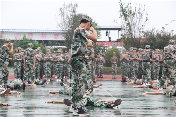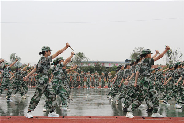 经历一个星期的锤炼,连雨水也阻挡不了同学们的坚毅。在整齐的步伐中,铿锵的口号里,教师们看到了建校的未来,国家的希望!