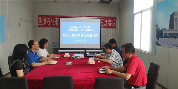 9月18日下午,成都石化工业学校化工科一行3人前往成都晟源石化有限公司召开了校企合作订单班方案研讨会。成都晟源石化有限公司总经理助理马晓军,总经理助理、办公室主任赵丽坤,生产副总指挥李佳庆等领导出席了会议。