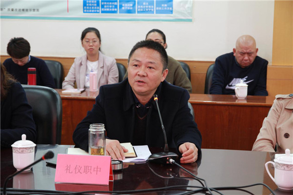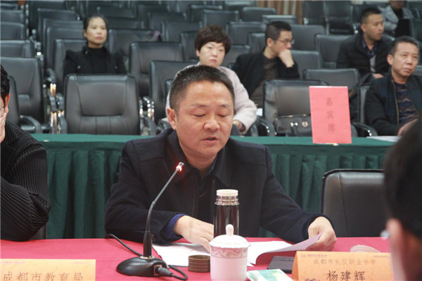礼仪职中校长杨建辉在反馈会上作表态性发言