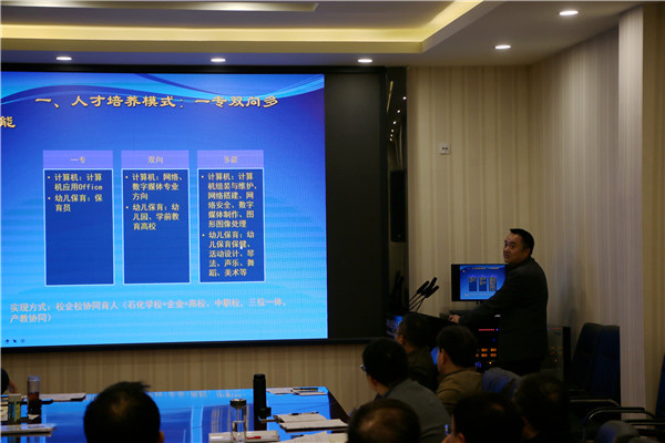 会议听取六个专业科、六个子项目负责人的工作推进情况汇报。副校长刘遵勇做产教融合、专业建设的实施撰写体例要求,副校长罗光宇做中期指导资料归档要求。