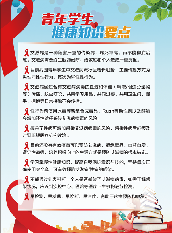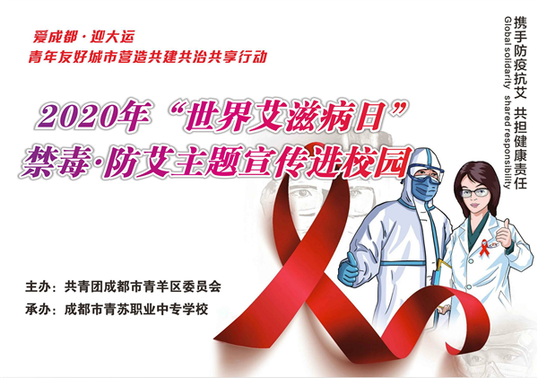 为进一步加强青年健康促进工作,引导学生尊重生命、热爱生活,加强青少年艾滋病和性病的宣传教育,推广有效的干预措施,切实降低艾滋病和性病发生率,2020年11月30日,在第33个“世界艾滋病日”来临之际,由共青团成都市青羊区委员会主办,四川省成都市青苏职业中专学校(以下简称:青苏职中)承办的“爱成都·迎大运”青年友好城市营造共建共治共享行动,2020年“世界艾滋病日”禁毒·防艾主题宣传进校园活动在青苏职中树人堂举行。青苏职中师生代表近300人参加学习。