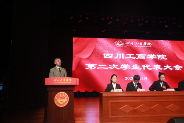 11月28日,四川工商学院第二次学生代表大会在眉山校区召开。学校领导、成都市学生联合会执行主席谢定轩及学校各职能部门负责人、二级学院党总支书记(副书记)出席会议,西华大学、四川大学锦城学院、四川大学锦江学院等兄弟院校学生会代表到会祝贺,四川工商学院260名正式代表参会。