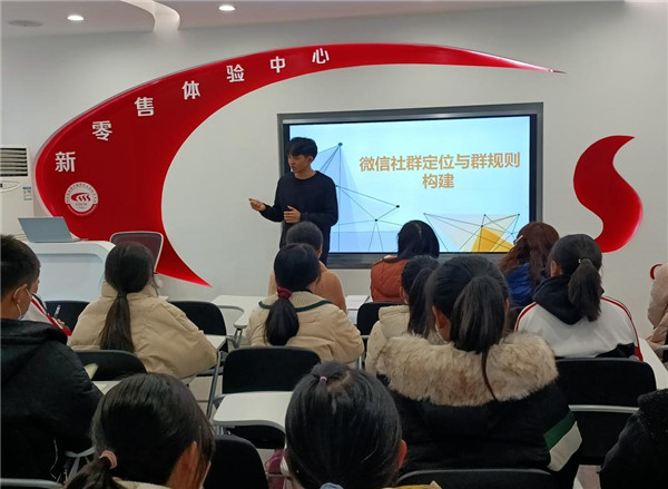 为了学习、了解行业发展最新技术,协助学生积极应对电商技能竞赛,促进课堂与行业发展深度接轨,2020年11月30日,成都市何毓颖工作室邀请厦门一课信息技术服务有限公司的钟俊波老师,针对社交电商运营中的社群运营、直播电商和微店店长版店铺搭建等做了相关技能培训。本次培训由成都市何毓颖名师工作室领衔人何毓颖老师主持,培训为期1天,何毓颖工作室的部分成员及成都市财贸职业高级中学校部分电子商务专业的参赛学生参加了此次培训。