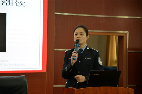 蓝科长向同学们详细介绍了毒品的种类、毒品的危害、毒品上瘾的原因、中学生应该如何抵制和预防毒品等相关知识,通过图片与案例,让学生更加全面的认识到目前各类新型毒品的种类及其危害,提升学生预防、拒绝毒品侵害的能力。