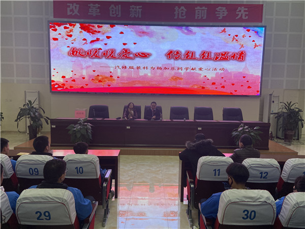 12月15日,成都石化工业学校汽服科在109会议室举行了“爱心捐款活动”,该科科长、德育副科长、各班班主任和学生代表参加活动。