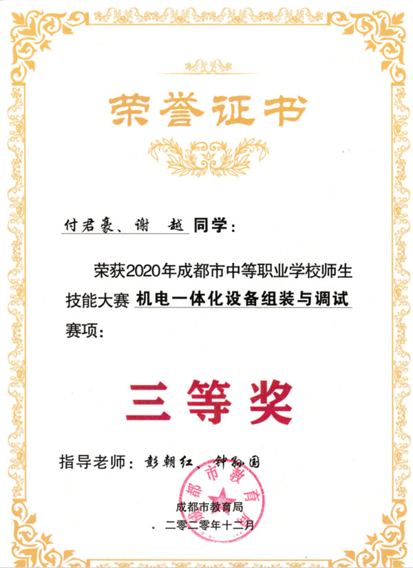 2020年10月29日,成都市教育局下发《关于举办2020年成都市中等职业学校师生技能大赛(学生组)的通知》【2020】-386(发)。本次技能大赛旨在贯彻落实《国家职业教育改革实施方案》《四川省职业教育改革实施方案》精神,进一步深化成都市职业教育教学改革,推进“以赛促教、以赛促学、以赛促改”,全面提高技术技能型人才培养质量。