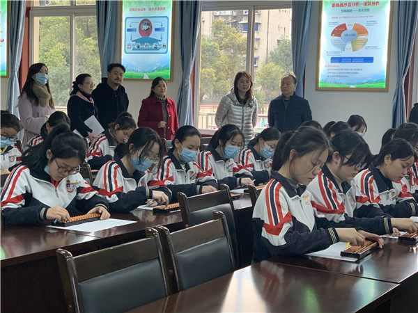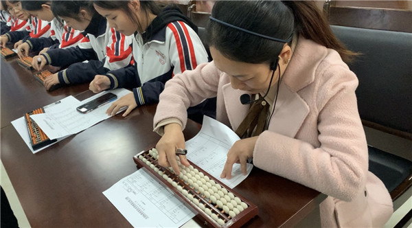 财贸职高把“珠算”融入学习课程,创设了浓厚的“精益”文化氛围,让珠算非遗在学生心里生根,且与学生职业生涯规划挂钩,参观人员对此表现出强烈赞许。财贸职高作为“成都市第七批市级非物质文化遗产代表性项目——成都珠算”保护单位,在弘扬与传承中国传统文化和培养与指导珠算非遗传承人的道路中贡献出瞩目的财贸力量!拨算盘的声音回荡在财贸校园,相信财贸会将珠算非遗传承光大。