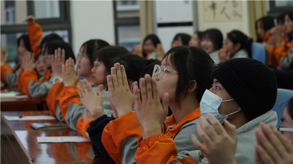同学们在现场体验了放松训练,感受、领悟自我压力缓解技巧。培训现场气氛活跃,熊萍老师讲解清晰明确,同学们互动热情积极,现场心理委员宣誓和齐喊口号环节将本次讲座气氛推向高潮。最后,熊萍老师对上学期班级心理委员工作进行总结,表彰10名优秀心理委员,为他们颁发了奖状。