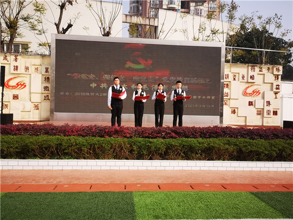 2021年3月15日,成都市财贸职业高级中学校(以下简称:财贸职高)开展了“学党史、强信念、跟党走”党史教育系列活动。据了解,本次活动由财贸职高信息技术部2018级计算机大专2班团支部承办,财贸职高四川省名团干工作室指导。