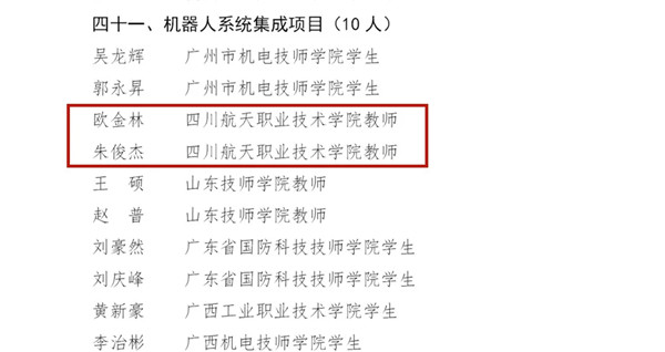 近日,从四川航天职业技术学院传来喜讯,该校两位年轻教师欧金林、朱俊杰顺利入围第46届世界技能大赛中国集训队。他们将通过进一步的集训考核,走上世界技能大赛赛场,与全球顶尖选手们同台竞技。