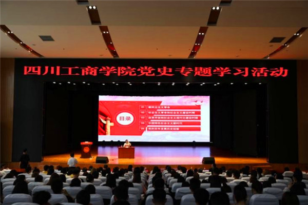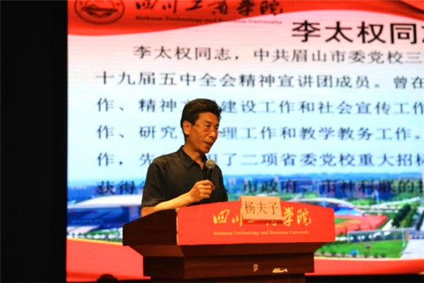为庆祝中国共产党成立100周年,践行党的初心使命,激发基层党组织活力,深化党史学习教育工作,5月27日,眉山市委党校三级调研员李太权教授受邀赴四川工商学院举行题为《中国共产党100年奋斗历程及宝贵经验》的讲座。该校校长夏明忠,党委副书记、副校长杨夫子,校长助理胡迎刚,人力资源处处长刘宇,学生工作部部长潘复超,党委宣传部负责人陈虎,各二级学院党总支书记、副书记,学生代表出席讲座。会议由杨夫子主持。