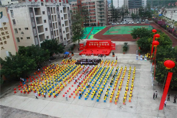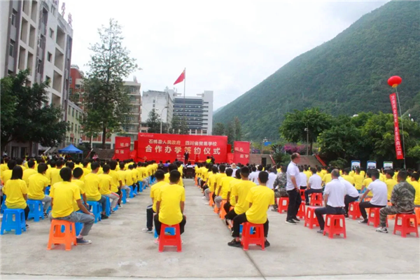 雅安市教育局职教科领导、石棉县县级相关部门、各乡镇(街道)主要领导或分管领导、全县各中学校长、校企合作友好单位代表、总部师生代表、石棉校区全校师生近800人参加了当天的签约仪式。