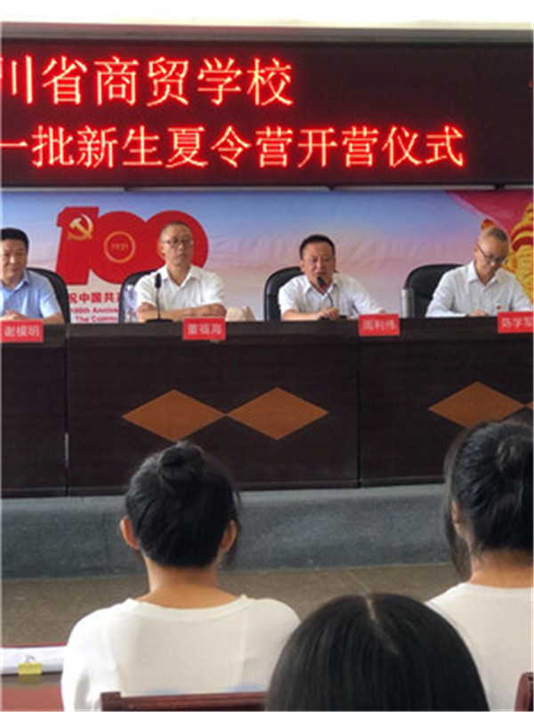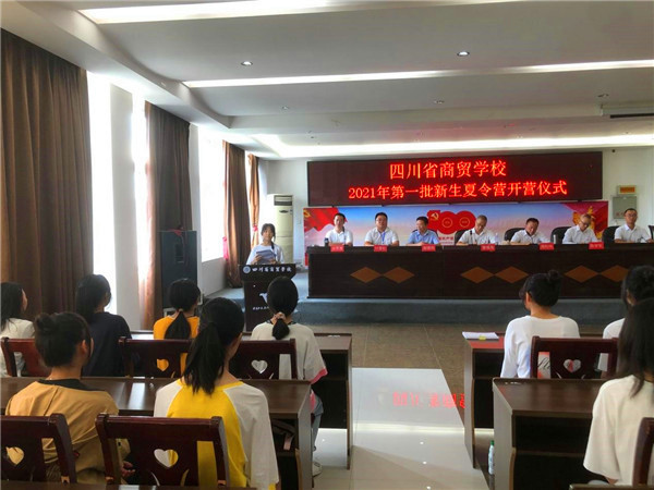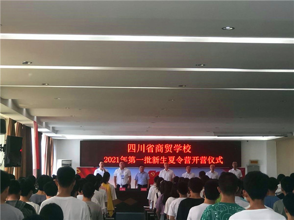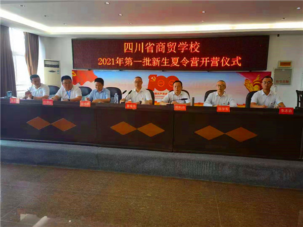 7月11日上午,四川省商贸学校2021级首批新生夏令营在真知楼611会议室举行了盛大的开营仪式。开营仪式在庄严的国歌声中拉开了帷幕。校长董福海、校长助理周利伟以及学校学生处、教务处、高质量发展办公室、团委、保卫处的负责人参加了开营仪式,仪式由团委书记张若愚主持。