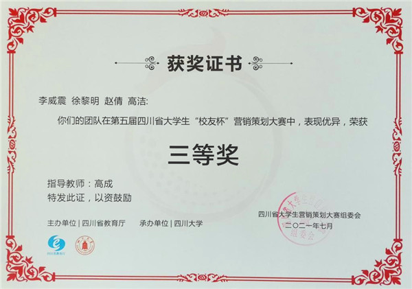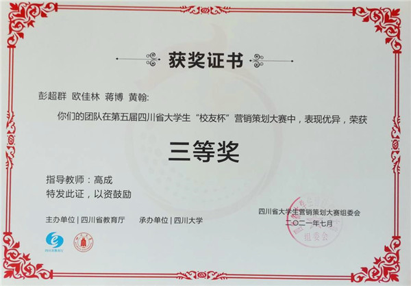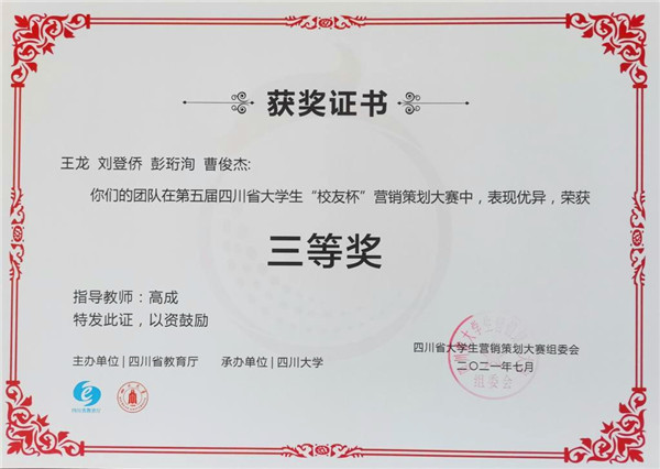 近日,第五届四川省大学生“校友杯”营销策划大赛在四川大学双创基地圆满落幕,四川航天职业技术学院管理工程系市场营销专业参赛队获得大赛1个一等奖、2个二等奖、4个三等奖,获奖数量和质量都突破了往届。