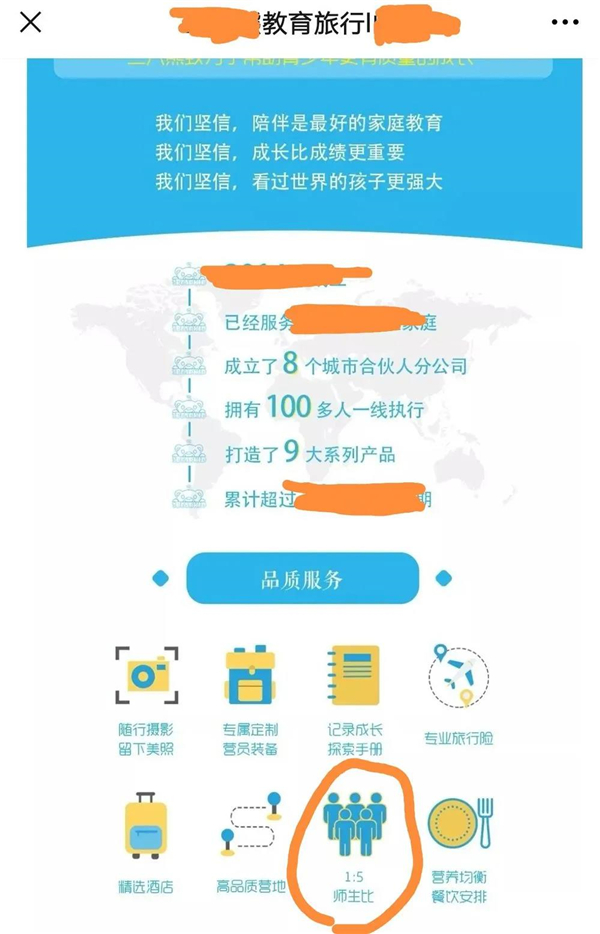 某夏令营组织机构在宣传页面注明了“师生比”,但部分组织机构并不注明。(来自手机截图)