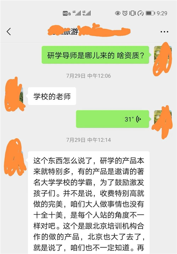 一位夏令营组织人员坦言,对研学导师的具体来源、资质等并不清楚。(来自手机截图)