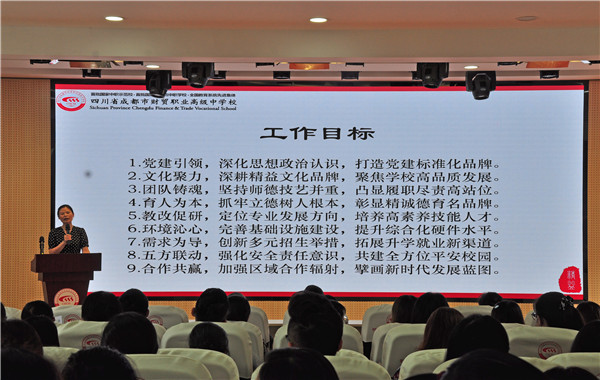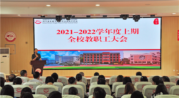2021年8月27日下午2点,四川省成都市财贸职业高级中学(以下简称:财贸职高)2021-2022学年度上期全校教职工大会在枣子巷校区阶梯教室召开。