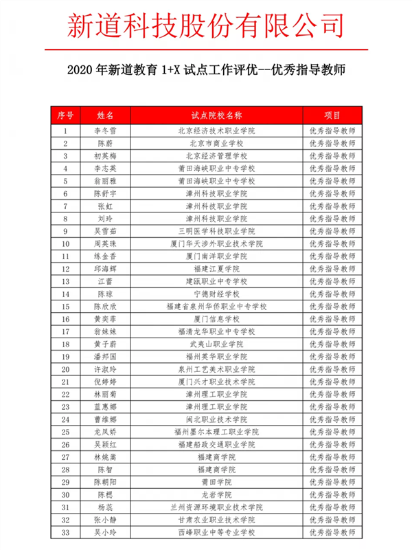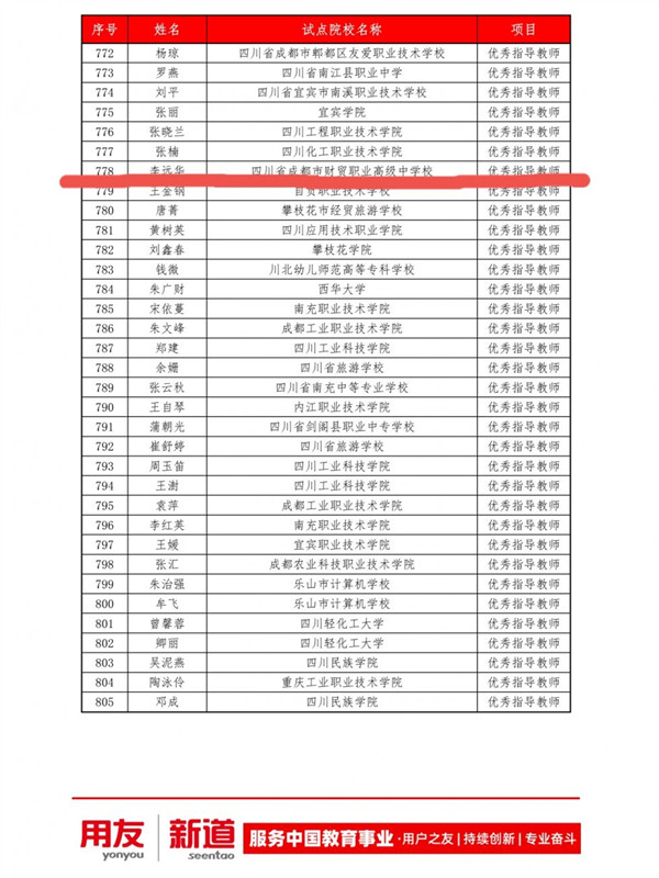 2021年,财贸职高教师李远华获评“2020年新道教育‘1+X’优秀指导教师”。财贸职高在“1+X”试点工作实施过程中,积极推进,工作有条不紊,成果显著,展现出精益至臻的财贸力量。