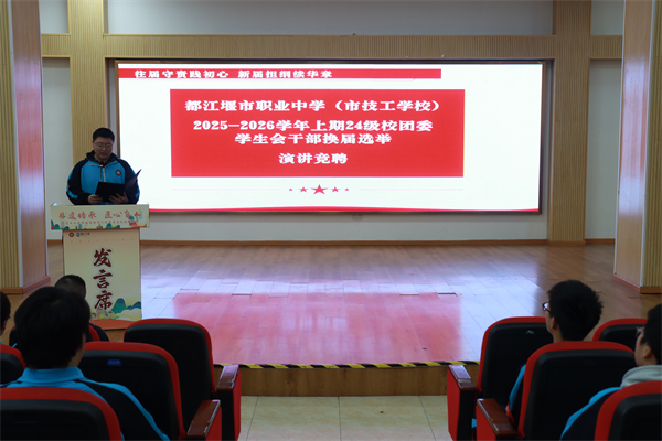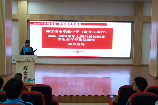 为进一步巩固和发展校团委学生会组织,加强校团委学生会干部队伍建设,提高学生干部整体工作水平,11月5日,都江堰市职业中学(市技工学校)召开2024级校团委学生会干部换届选举大会。