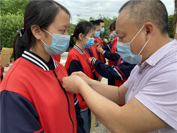 学校党支部书记王万瑞同志宣读新入团的8名学生名单并发表讲话,希望同学们以身作则,严于律己,争做勇于拼搏的时代后浪。随后,老团员代表为新团员佩戴团徽。每个团员从佩戴上团徽的这一刻起,就要认清自己肩负的责任,努力履行团员的义务,用实际行动来表明自己无悔于“共青团员”这个光荣的称号。