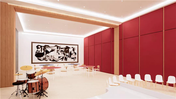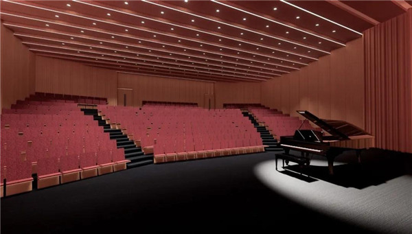 不仅有这样世界级的练习厅,孩子们的展示舞台——下沉式音乐厅是成都巴德美际邀请巴德音乐学院教授亲自指导设计,严格按照专业歌剧院级别打造,采用纯自然声演奏厅设计。用800余平米,可容纳400人的空间,为孩子们创设的博雅教育的展示场景。