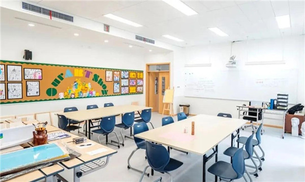 巴德美际学校所有教室的桌椅均配置为教育家具排名第一的美国KI教育家具,课桌和座椅具备移动性和灵活性,高低可调节,符合人体工学设计,为学生提供多种舒适的坐姿。