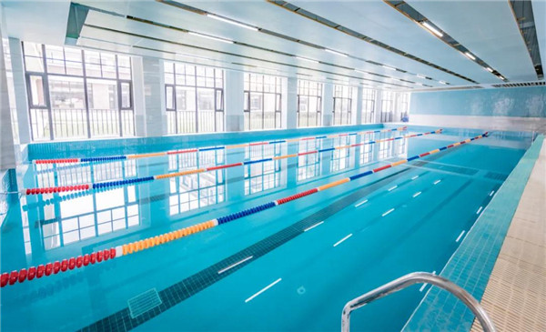 除此之外,巴德美际学校打造的标准化的室内恒温游泳室。4条2.5米标准宽度泳道,采用国际泳联推荐的逆流式循环净水系统, 全部循环水从池底送入池内, 从两侧边缘溢流回水,保证水流分布均匀,便于池水表面污物及时排除。泳池还采用先进的三集一体除湿热泵系统,具有新风、除湿、防结露等功能,每一处高标准的细节都是学校对博雅教育最好的践行。