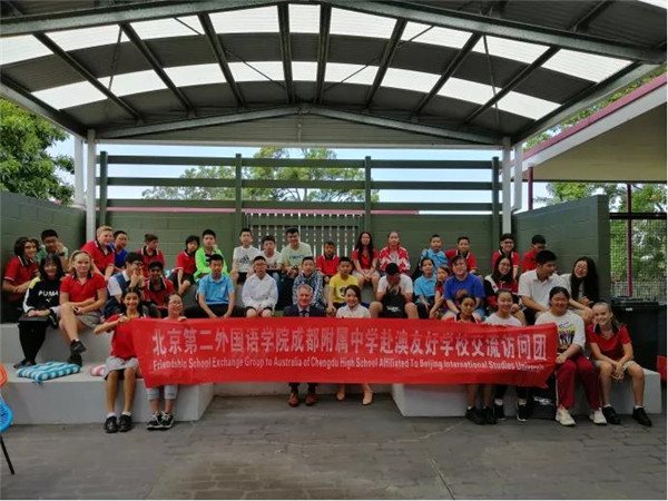2019年1月,学校组织澳洲研学活动;2019年7月,组织日本、白俄罗斯游学活动,同学们深入语言国,体验当地风土人情、与当地学生、老师进行深度交流,并建立深厚友谊,多次在传统节日时互赠祝福。在校园微博物馆中,也有多幅学子与友好学校的交流作品。