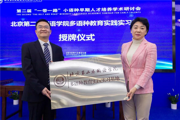 2019年12月5日,学校成功举办第二届“一带一路”小语种早期人才培养学术研讨会,北京第二外国语学院授予学校“北京第二外国语学院多语种教育实践实习基地”。